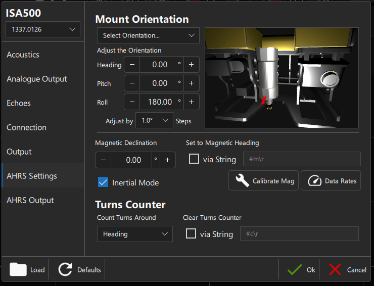 If the sensor is mounted upward facing then Roll = 180° is required. All settings in this window should in theory be possible to account for in post-processing as well.