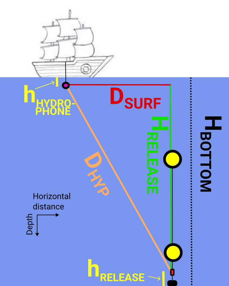 \(h_{RELEASE}\) is the height of the acoustic release above the bottom.