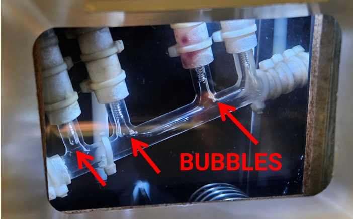 Gently wipe any water off the sampling tube with a kimwipe. Briefly turn on the pump to suck any remaining water out of the tube (📹 Clean the sample tube).