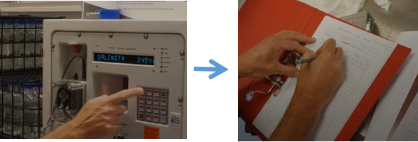If the salinity reading in the panel is stable (can take a few seconds), write down the value in the sample log sheet.